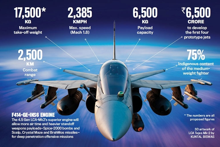 Key specifications-capabilities of the TEJAS MK-2 illustrated in 3D digital artwork Indiatoday image